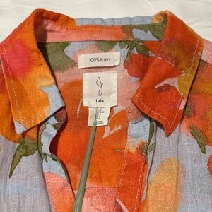 Women’s J by Joie 100% Linen Long Sleeve Floral Button Up Blouse Size L