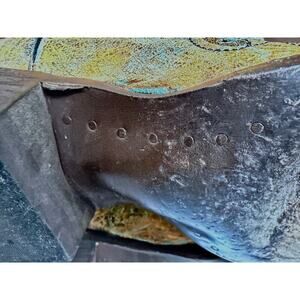 Color: Distressed brown with turquoise patina, multicolor embroidery