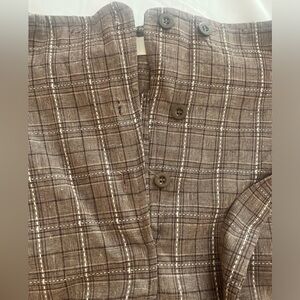Women’s JCL size M brown/white plaid belted pants with pleats, button fly, front pockets and faux slot pocket detail in back. 100% polyester no stretch. NWOT waist measures 17” inseam 27”