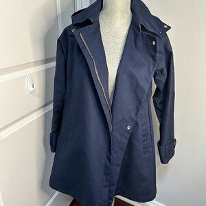 Women's JCrew Belvedere A Line Navy Blue Swing Trench Coat Size S NWOT