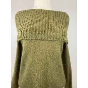 Women's J.Crew Medium Wool Blend Cowl Neck Sweater Knit Green Solid L/S Ribbing