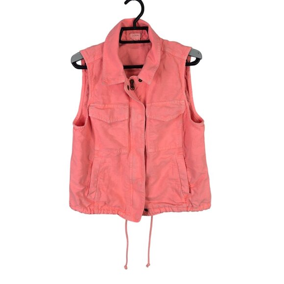 Womens J.Crew Pink Linen Blend Utility Vest Drawstring Hem Button & Zipper S