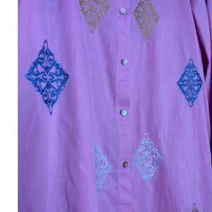 Women's J.Jill LS Embroidered Button Front Blouse Top, Size 2X, EUC