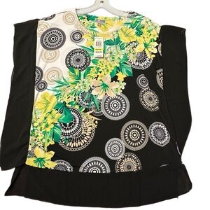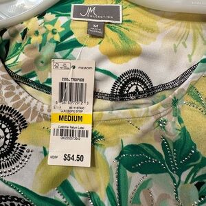 Women’s JM Collection Yellow & Green Floral Knit Top - Size M - NWT