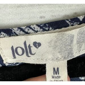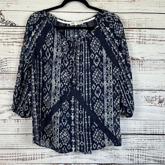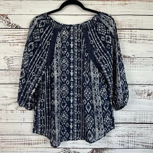 Womens JOLT Navy Blue Aztec Lace Boho Flowy 3/4 Sleeve Top Career Casual Size M