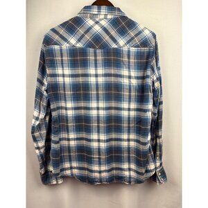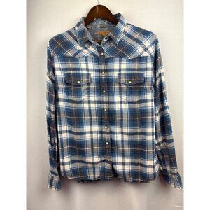Women’s Jach’s Girlfriend Large Blue & White Plaid Flannel with Snap Buttons