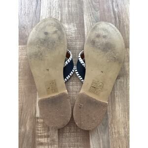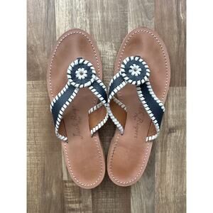 Women's Jack Rodgers Ro Leather Stitched-Trim Navy & White Sandal size 7 Coastal