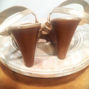 Metallic Gold/Platinum Color with Wood Style Bottom Heel