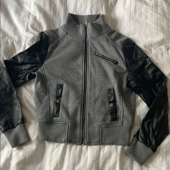Sweater Jacket with Faux Leather sleeves