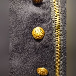 VLD navy blue, short, fitted zip up jacket. NWOT. Bronze/gold detailed buttons in excellent condition.