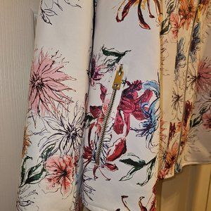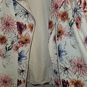 100% Polyester leather-like multi-color bomber jacket. Zippers on the sleeves, and 2 zippered side pockets. Buttoned Tabs on shoulders. Jacket can be worn fully zipped or open front. This printed Jacket can be worn dressed up with slacks, or dressed down with leggings. Your color combinations are endless!
