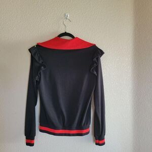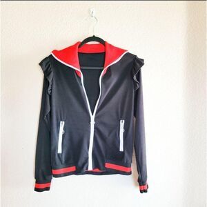 Womens Jacket Black M Full Zip Ruffle Shoulder Sleeve Detail Long Sleeve