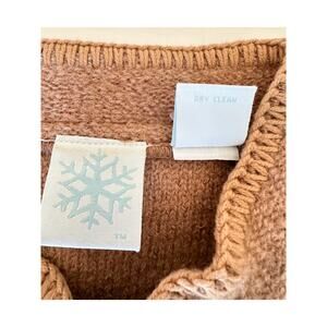 Womens Jacket Cardigan Size Large Brown Wool Chunky Button Floral Embroidery