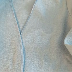 A very soft and warm women’s jacket robe in a beautiful sky blue color. Lightweight material.