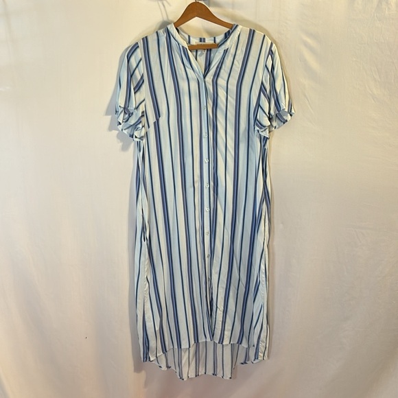 Women’s Jamie & Layla Blue Striped Shirt Dress Button Front Belted Size XL
