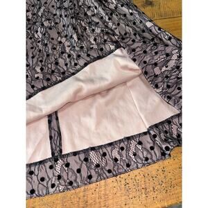 This dress is in excellent pre-loved condition! No rips or stains! This dress is gorgeous! it is a blush color with a black lace overlay. It has a zipper closure and is knee length. The best part is there are pockets! Measurements are in the photos. Women's size medium.