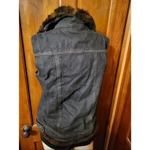 Women’s Jean Denim Vest Faux Fur Trim Collar Removable Size M