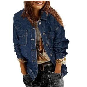 Women's Jean Jacket Boyfriend Button Up Long Sleeve (M)