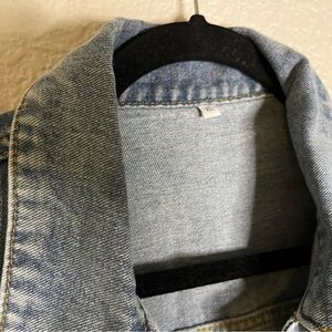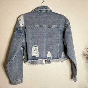 Women's Jean Jacket Button Down Cropped Distressed Frayed Denim