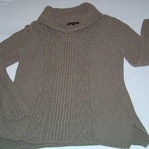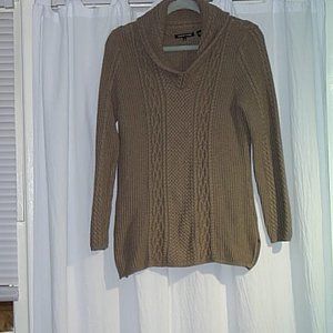Women's Jeanne Pierre Size Medium Camel Brown Cable knit Sweater Shawl Collar 100% Cotton Great Condition