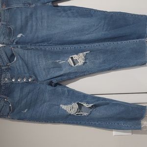The wild fable pair is gently preloved, worn once. They are straight legs. They have button fly closure, deconstruction at the knees, and ankles. The 2nd pair is NWT sonoma high rise, straight crop jeans, size 14. They have a button and zipper closure. There are 2 small deconstructed accents, 1 on each thigh area. Both pairs have pockets on front & back