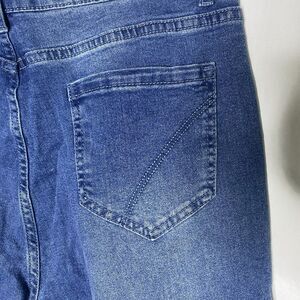 Womens Jeans Button Fly Distressed Cuffed Hem Cropped High Rise Denim Dark L