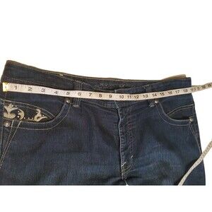 Women's Jeans Sz 16 High Waist Embroider Pockets Dark Wash Denim Straight Leg