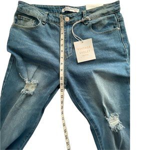 🌹Women’s Jeans VINTAGE VIOLET Petite ripped mom jeans in mid blue Size 14P