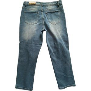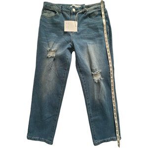 Women’s Jeans VINTAGE VIOLET Petite ripped mom jeans in mid blue Size 14P.