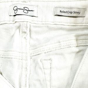 Discover chic comfort with these Women’s White Cotton Jeans by Jessica Simpson. Designed in a relaxed skinny roll crop style, these jeans are perfect for #casual wear. With a size of 6/28, they offer a flattering fit with #measurements of 30" waist, 26" inseam, and 34" full length. Made from 98% cotton and 2% elastane, they ensure a soft touch and a slight stretch for #comfort. The zip front adds a classic touch to these #whitejeans.