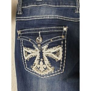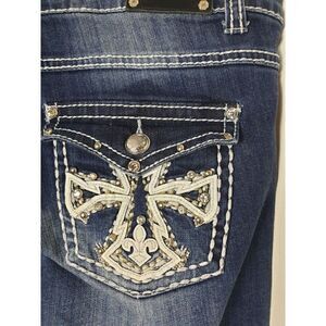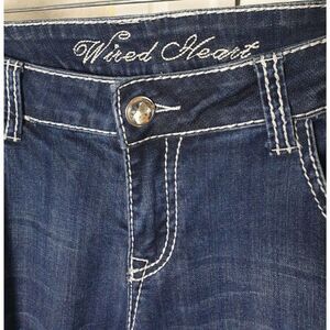 Wired Heart Women's Low Rise Jeans Rhinestone Bling Straight Leg Thick Stitched Cross Studded Denim Jeans Size 33" NWOT