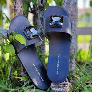 Women's Jelly Rhinestone Slide Flip Flops Flat Sandals