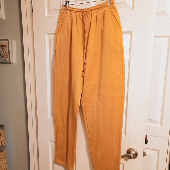 Womens Jennifer Lauren Mustard Yellow Sweatpants, L, Hi Rise, Elastic & Drawstring, Wide Legs, 2 Pockets, New