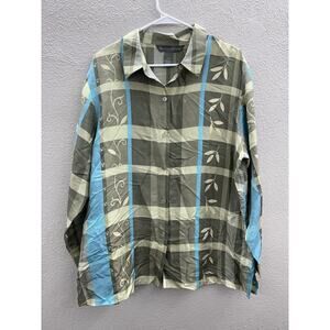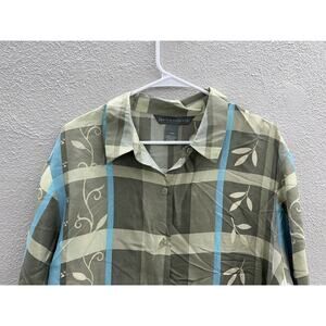Womens Jessica Holbrook Green Blue Floral Silk Button Up Size Large