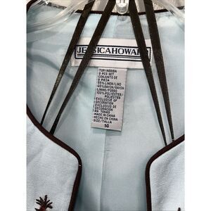 This is a women's Jessica Howard dress with a jacket in a blue and brown color combination. The dress is made of a linen blend material and is in size 14. The set is new with tags attached, making it a stylish and elegant choice for a special occasion or formal event. The Jessica Howard brand is known for its sophisticated designs, and this dress with a coordinating jacket offers a polished and put-together look for any occasion.