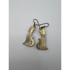 Women's Jewelry Pink Enamel & Gold-Tone Kitty Cat Long Dangle Hoop Earrings.