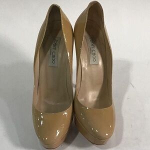 Gently used Women’s Jimmy Choo Patent Leather Platform Pumps Beige Size 39.5