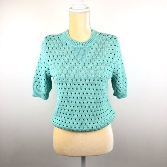 Women's Joe Fresh Perforated Knit Crew Neck Short Sleeve Sweater Sz L Turquoise