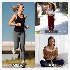 Product details Fabric type 92% Polyester, 8% Spandex Closure type Drawstring Rise style High Rise Leg style Tapered About this item Functional Pockets for Active Lifestyles These lightweight joggers for women feature reinforced utility pockets that securely hold your , keys, or earbuds perfect for workout, errands, or relaxed travel 4-Way Stretch Performance Made from a high-performance polyester-spandex blend, these sweatpants move with your b
