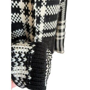 Women's John Fashion Small-Medium Open Front Black & White Wool Blend Sweater