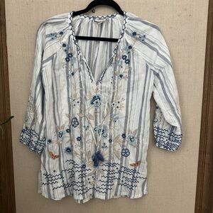 Women's Johnny Was Workshop White Embroidered Shirt Size Small