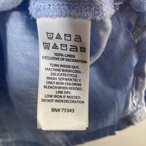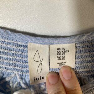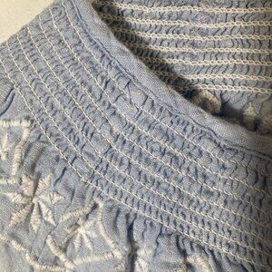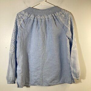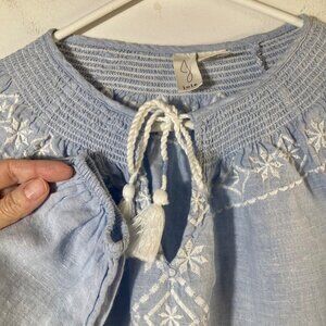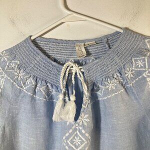 Womens Joie Boho Embroidered Linen Tunic Light Blue XS V Tie Neck Long Sleeve