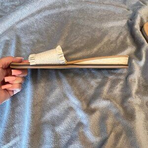 Beautiful ruffle trim leather and canvas slip on sandals, perfect for any summer outfit casual or dressy