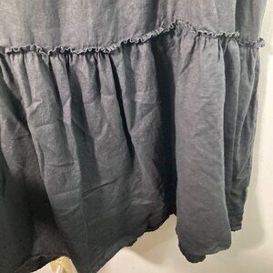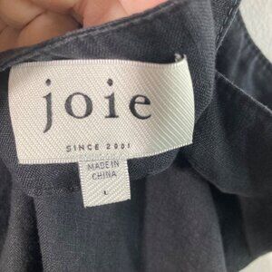Elegant black Joie sundress with a tiered linen design, perfect for warm weather outings. Features a comfortable midi length and mild fade for a chic, relaxed look. Ideal for casual and semi-formal occasions.