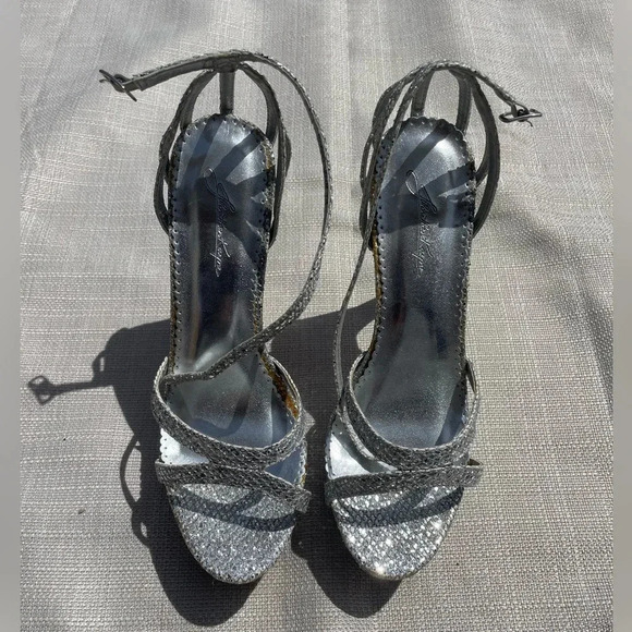 Womens Jonathan Kayne Silver Glitter Heels - Sz. 7