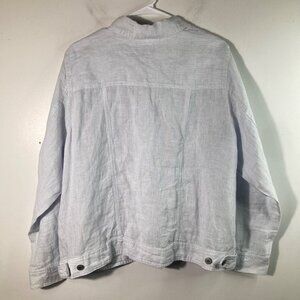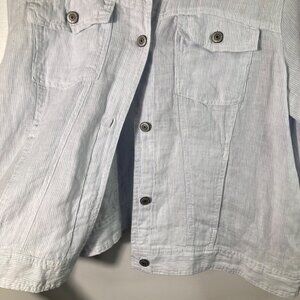 Womens Jones & Co Striped Linen Jacket White Blue 1X Linen Pockets