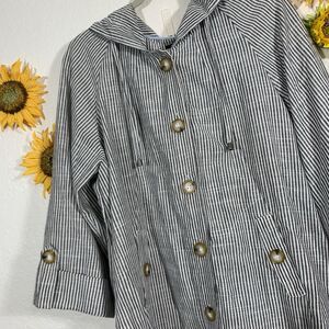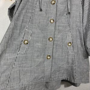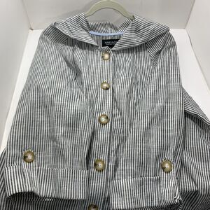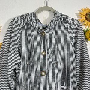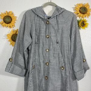 Womens Jones New York 1X Striped Hooded Button-Front Jacket Linen Blend Striped. Great condition! 3/4 sleeves.