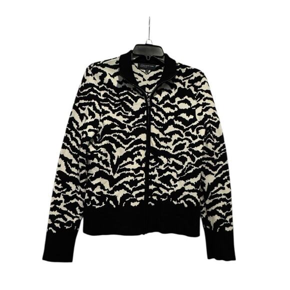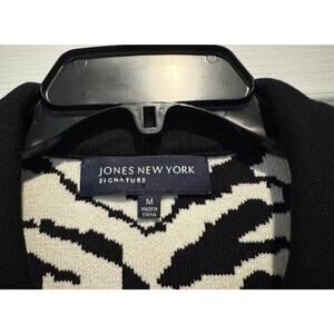 Women’s Jones New York Black & White Zebra Print Zippered Cardigan: Size M