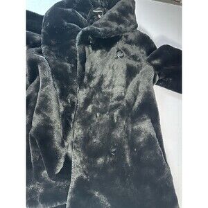Women’s Jones New York Faux Fur Jacket Beautiful Black Coat Button Size Small
