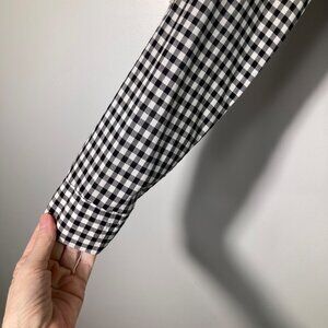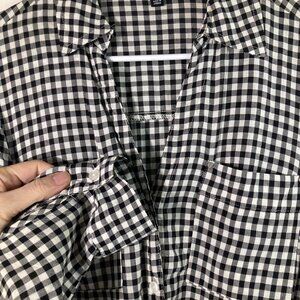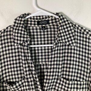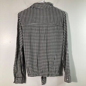 Womens Jones New York Gingham Button Tie Front Shirt Black White S Viscose